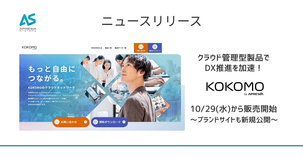 “つくって、つないで、つくし、人と社会を豊かにする”をミッションとする、APRESIA Systems株式会社(本社 東京都中央区、代表取締役社長 末永 正彦、以下、当社)は、クラウド管理型ネットワーク製品「KOKOMO」を、2025年10月29日(水)から販売開始いたします。