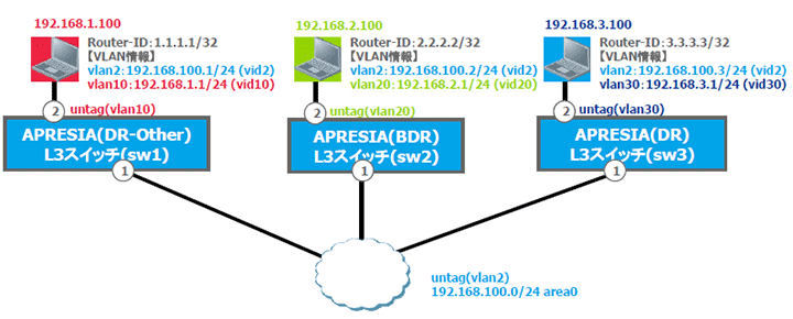 OSPFプロセスIDの設定 OSPFを有効にするネットワークの設定 直接接続された経路の再配布設定 |